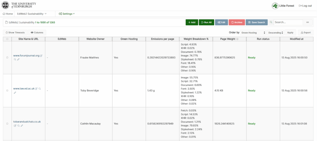 At Little Forest, we’re proud to have been part of this journey. Our Web Sustainability feature – developed in collaboration with Edinburgh – provided the data and scoring that made these changes measurable, trackable, and real. Without metrics, sustainability stays abstract. With them, it becomes actionable.